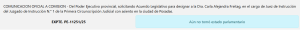 El comunicado oficial solicitando acuerdo legislativo para su designación ingresó hoy a la Legislatura provincial y ahora el pliego debe ser remitido para su correspondiente análisis de antecedentes e idoneidad por parte de los diputados que integran la La Comisión de Poderes, Peticiones, Reglamento, Acuerdos y Biblioteca.